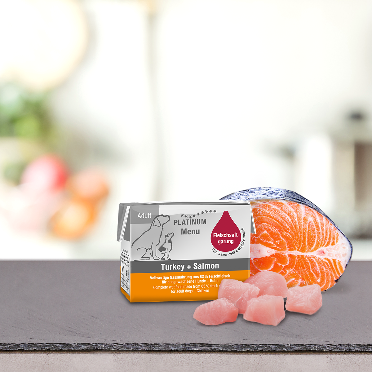Το PLATINUM MENU Turkey + Salmon περιέχει μόνο υψηλής ποιότητας συστατικά, τα οποία είναι κατάλληλα ακόμα και για ανθρώπινη κατανάλωση:
