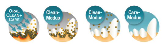 Το OralClean+Care δρα ενάντια στα βακτήρια και καθαρίζει τα δόντια μαλακώνοντας και χαλαρώνοντας σταδιακά την πέτρα.Λειτουργία φροντίδας