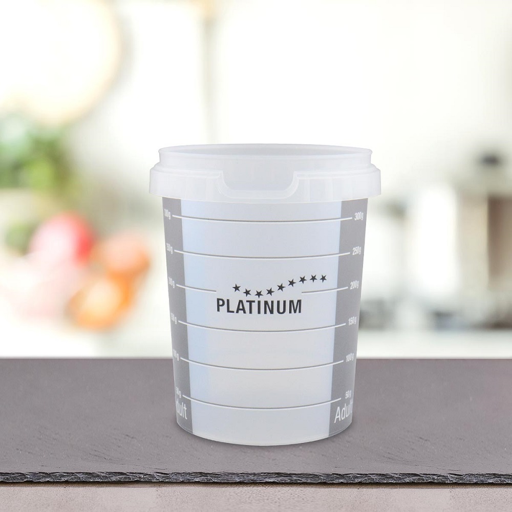 Ο πρακτικός δοσομετρητής είναι κατάλληλος για όλες τις μαγειρευτές (FSG) ξηρές τροφές της PLATINUM και έτσι βοηθά στην μέτρηση της σωστής ποσότητας τροφής για τον σκύλο σας με ακρίβεια και ευκολία. Λόγω του υψηλού επιπέδου υπολειμματικής υγρασίας στην ξηρά τροφή μας, συνιστούμε να μην αποθηκεύετε τον δοσομετρητή στην ανοιχτή συσκευασία.